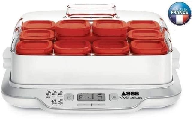 Este precioso diseño nos lo presenta la marca francesa Moulinex, directo desde Alençon; es un equipo compacto, insonoro, el cual se puede temporizar hasta 15 horas en su pantalla digital y se detiene con un sonido de alerta, incluye 7 tarrinas de cristal con una capacidad total de 1.12 litros, las tapas incluyen un indicador de fecha para recordar su fecha de elaboración.