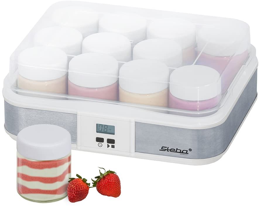 Esta marca de origen alemán presenta este diseño mucho más amplio para elaborar una mayor cantidad de yogurt con una capacidad total de 2.4 litros que se distribuyen en sus 12 tarros de cristal con tapa hermética; poseo un cuerpo robusto de acero inoxidable que hace de este un equipo más profesional.