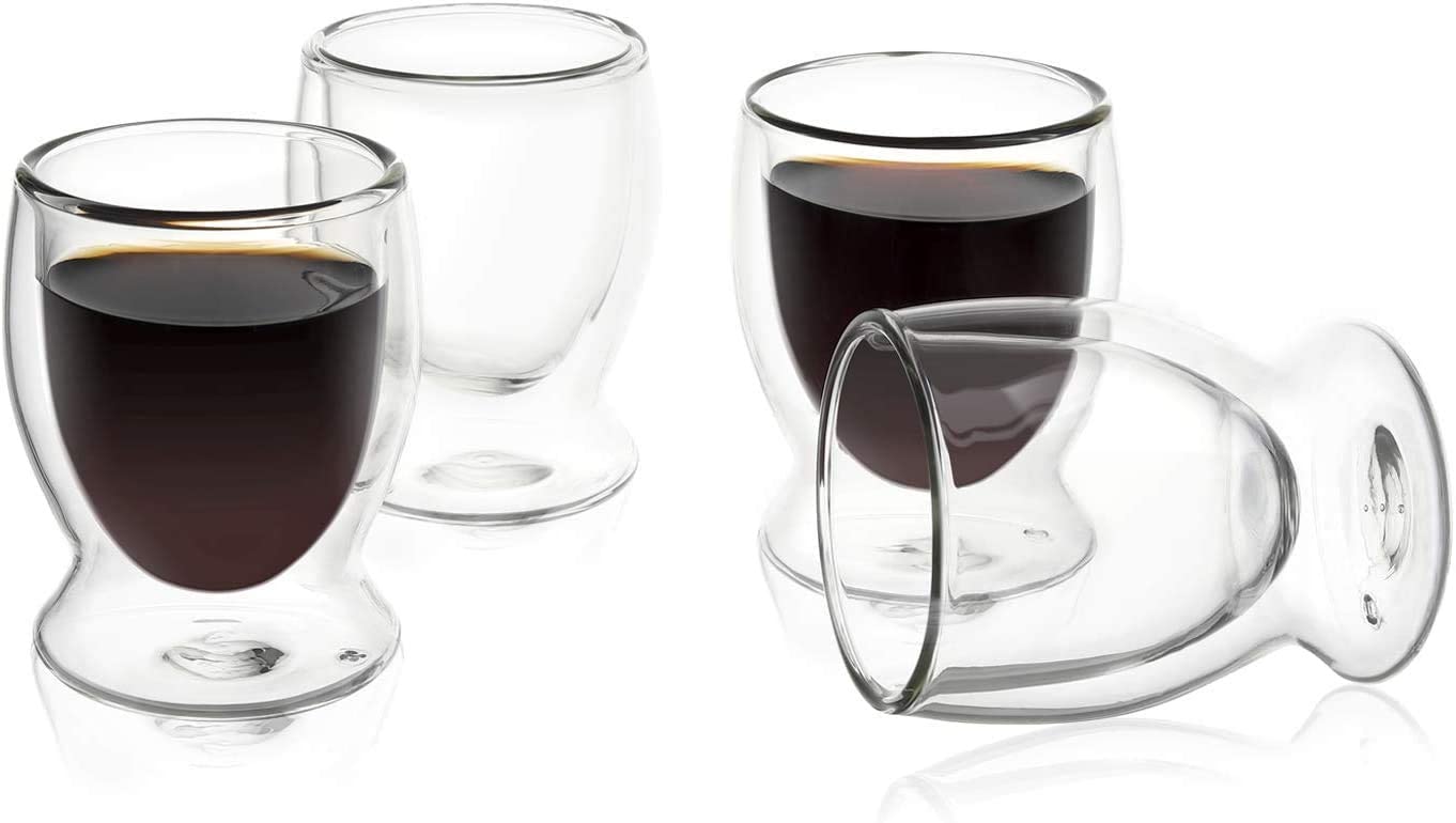 Apostamos siempre por los juegos de cristal de doble pared con aislamiento térmico por su elegancia, funcionalidad y el toque moderno que nos proporciona, en este caso presentamos este juego de mini tazas para café y bebidas calientes con una capacidad de 90 ml cada una. Es un estupendo juego para regalar.