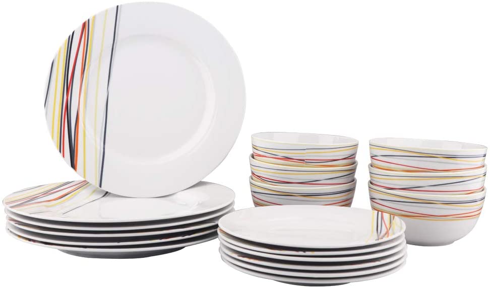 Presentamos otro diseño de vajilla de Amazon Basics porque nos parecen un acierto a la hora de elegir vajilla para usarla a diario. Este juego de 18 piezas es muy resistente, apto para lavavajillas, congelador y microondas, combina perfectamente con cubertería y mantelería de todos los modelos, especialmente pensada para el hogar.