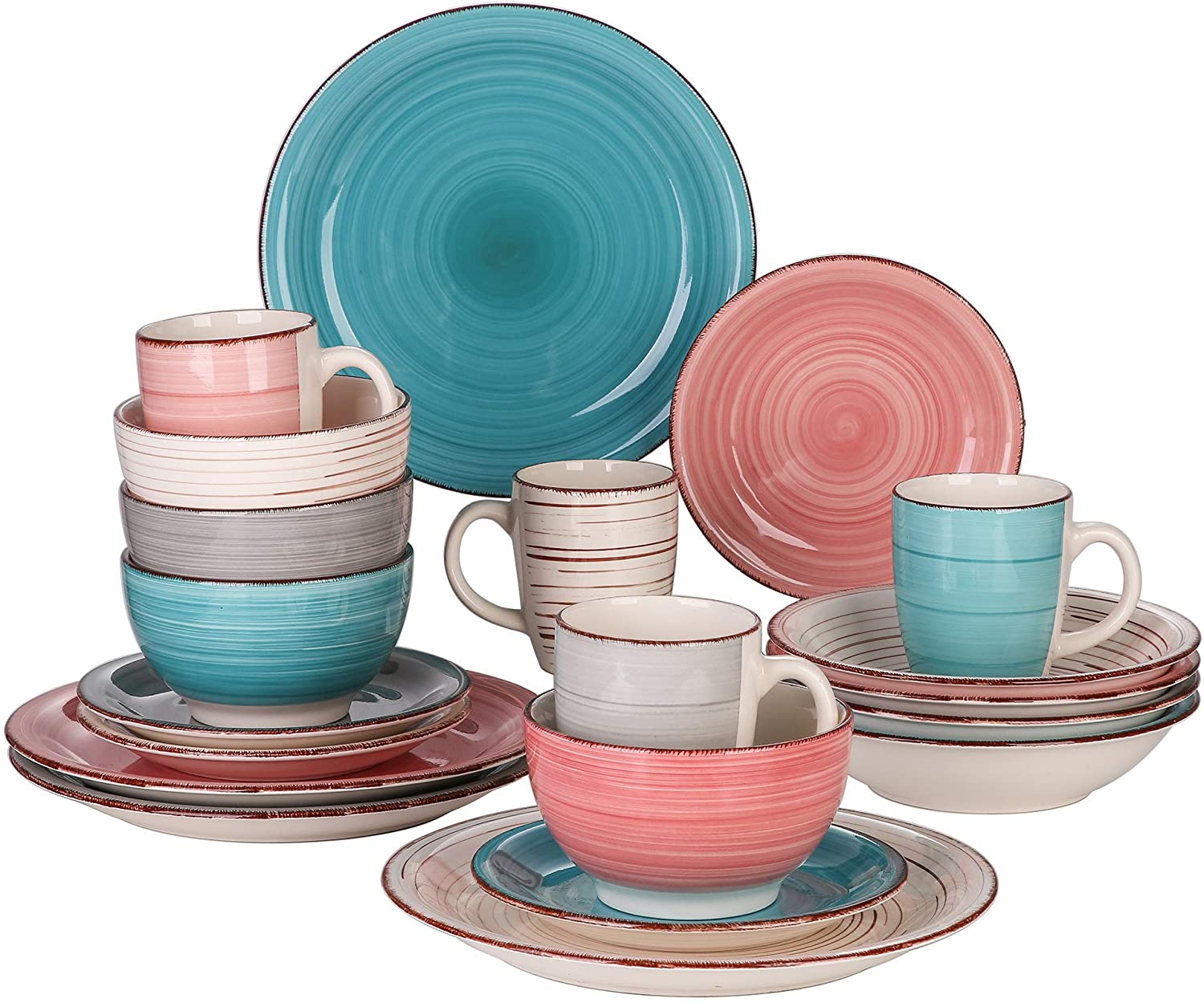 Divertida, colorida y con mucha personalidad, así es esta vajilla de Amazon Basics, la podremos encontrar en 10 colores diferentes, está pensada para 6 personas e incluye 6 platos llanos, 6 platos llanos pequeños y 6 boles. Apto para lavavajillas, congelador y microondas; fabricado con gres resistente, ideal para el uso diario.